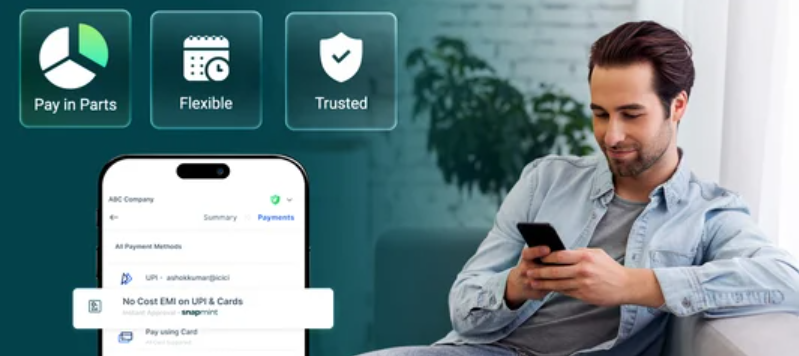 Traditional EMI usually involves frantically searching your wallet (or bag) to find a credit card you do not have. Snapmint allows you to pay with only your mobile number and UPI – easy and universal.